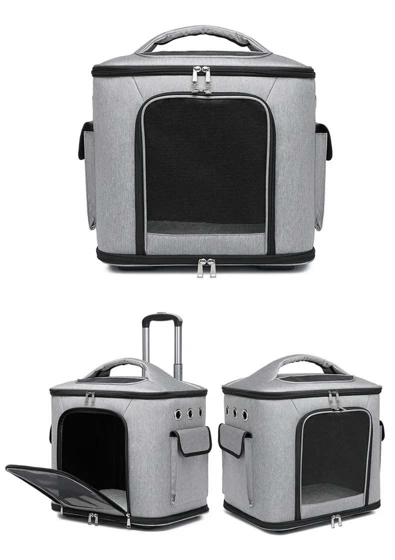 Keywords:foldable pet trolley, airline pet carrier, rolling cat travel bag, breathable pet suitcase, pet travel cabin, detachable wheel pet bag, portable dog crate, pet backpack on wheels, large pet travel case, pet luggage with leash