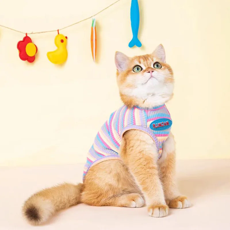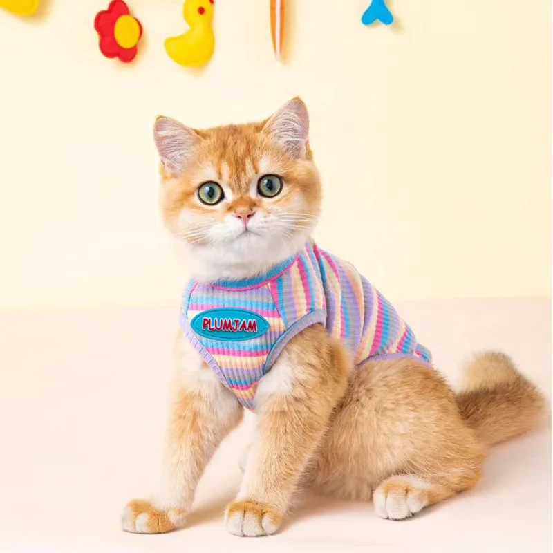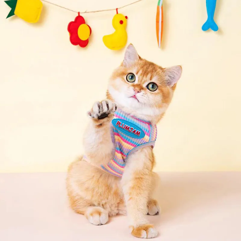 Thin Rainbow Vest for Cats – Anti-Shedding & Breathable Summer Wear